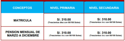 Paso 6: Ahora podrá descargar los documentos generados y deberá imprimir la Constancia de Matrícula. Si tiene más hijas, seleccione "Volver al inicio" para repetir el proceso. De tener inconvenientes, comuníquese con el área de Informática al WhatsApp 937422033 o de forma presencial. PROCESO DE MATRÍCULA PRESENCIAL 2026 Una vez completada la matrícula virtual, deberá asistir al colegio a partir del 09 de febrero del 2026 de manera presencial con la Constancia de Matricula impresa para finalizar el proceso, que incluye: • Elección de talleres solamente para 1er grado de primaria • Inscripción en Escuela de Padres. • Procesos de Pastoral y Sacramentos. • Llenado físico de Ficha Médica y Psicológica • Entrega de la Agenda Escolar 2026, libro de tutoría y emprendimiento. COSTO DE LA MATRÍCULA Y PENSIONES DEL AÑO ESCOLAR 2026 MEDIOS DE PAGO 2026 A partir del 15 de enero de 2026, se podrán realizar los pagos de matrícula y pensiones a través de los siguientes canales: Banco Continental (BBVA): Agente, APP Móvil y Banca por internet - Utilice el DNI de la estudiante como código. - Pago de servicio: CEPARROQ NTRA SRA DE FÁTIMA IQ. Pago Efectivo: - Ingrese a la plataforma SIEWEB con su usuario y contraseña de la familia - En el menú, seleccione la opción "Pagar" para generar un código CIP. - Realice el pago con el código CIP a través de banca móvil o en cualquier agente autorizado. Para que el sistema SIEWEB se active y permita el proceso de matrícula, el pago correspondiente debe haberse realizado con al menos 24 horas de anticipación. Si experimenta inconvenientes con el pago, puede contactar al área de Contabilidad a los números de WhatsApp: 937413352 y 964440660.